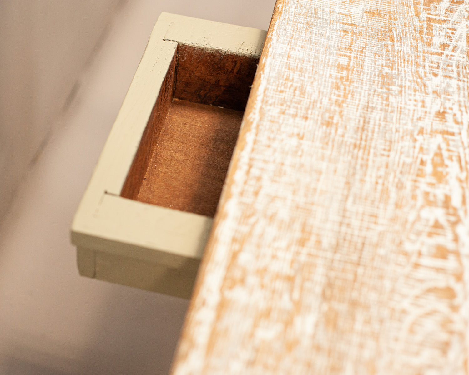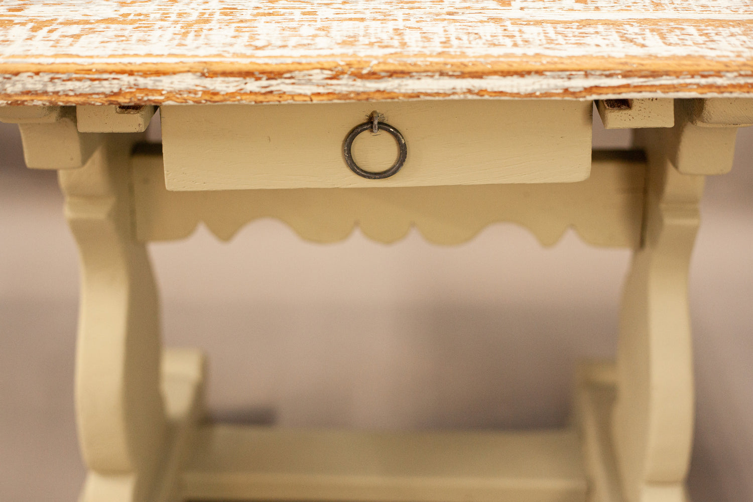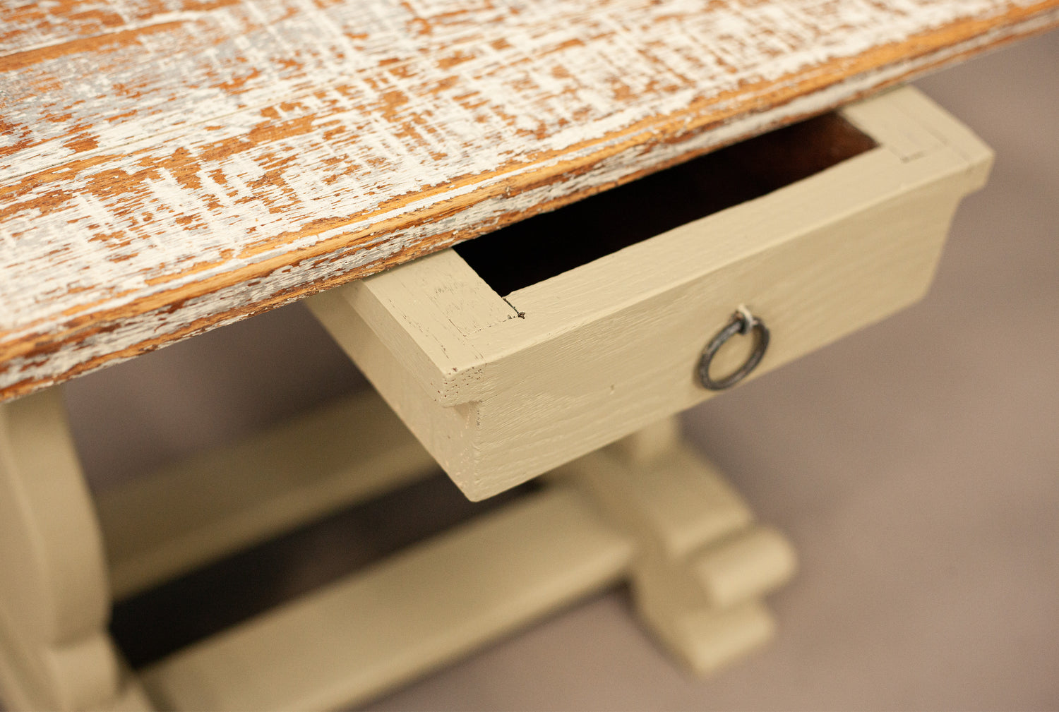 Antique table with two sides, renovated in a rustic style.