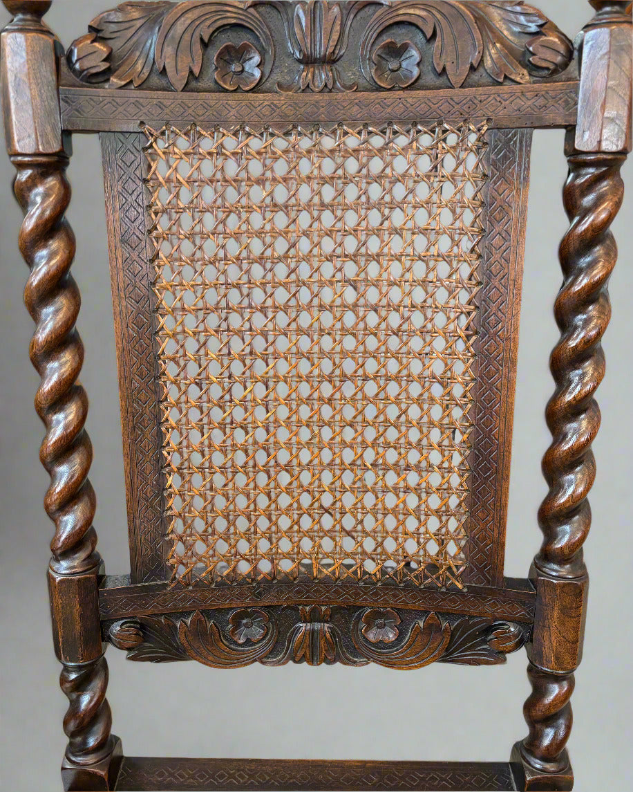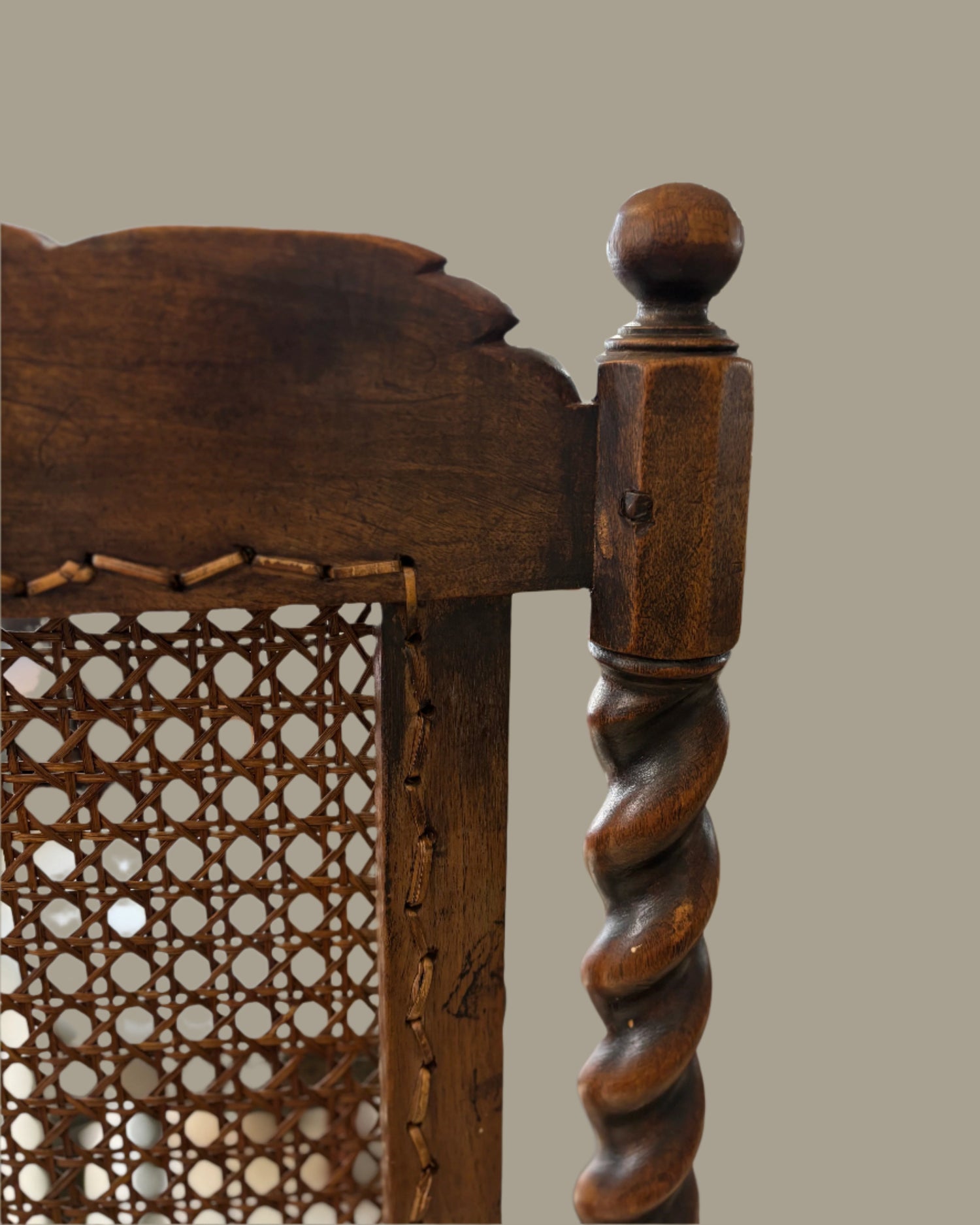 Ратанови седалка и облегалка, струговани и резбовани орнаменти по рамката.