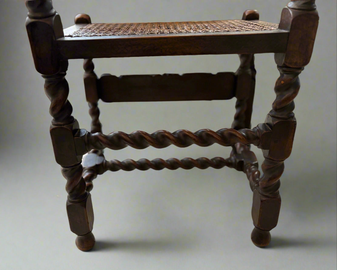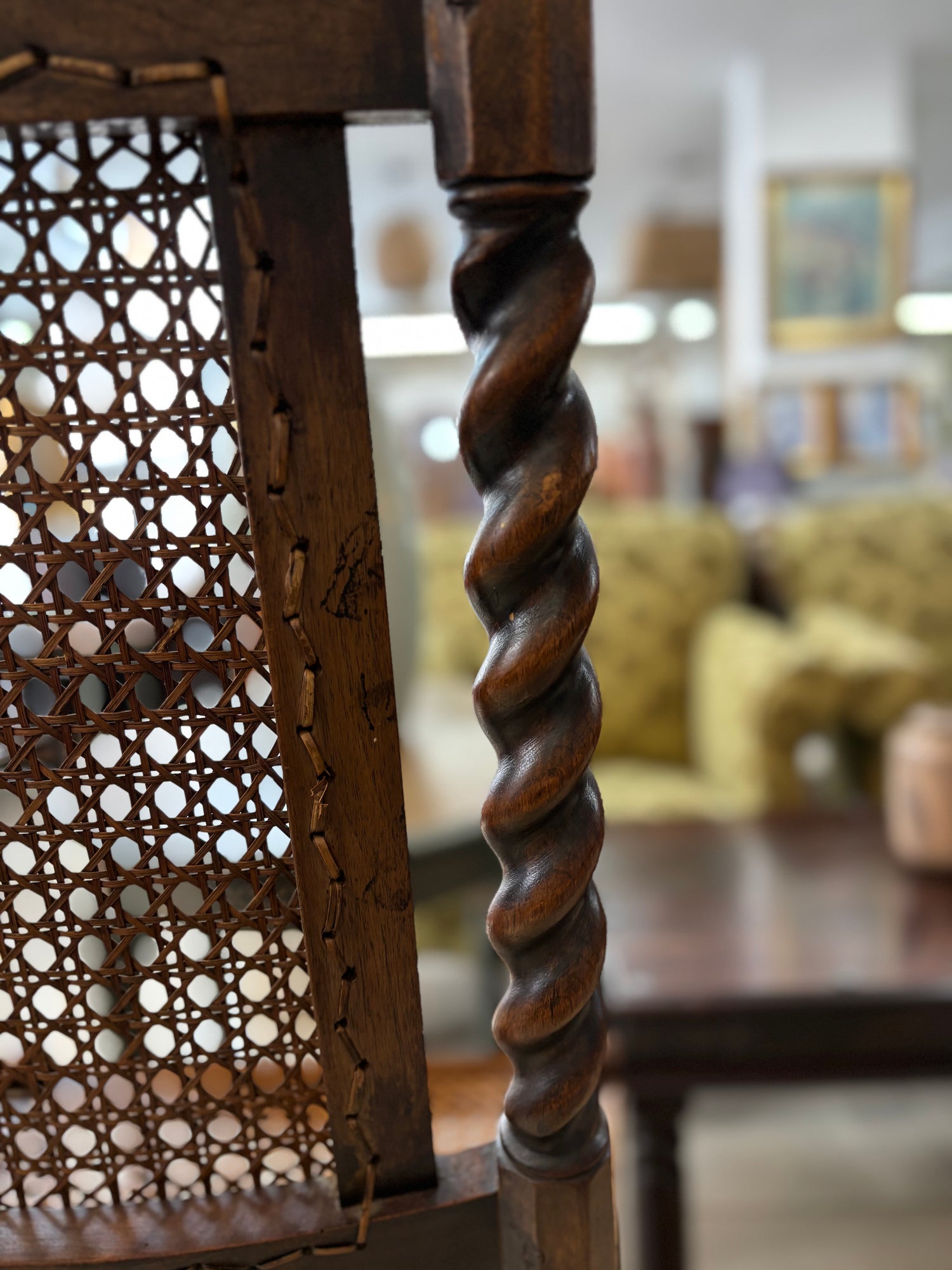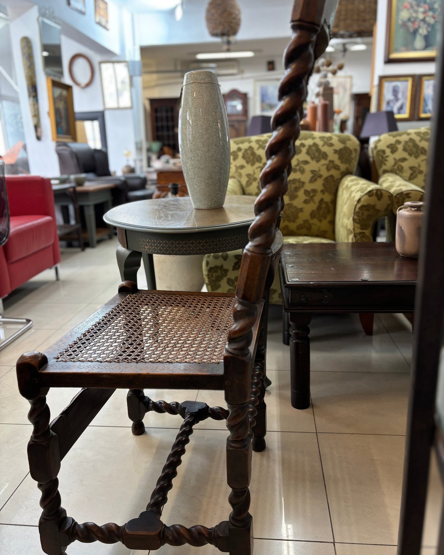 Отлично запазен, с красива патина по дървото и здрава ратанова част.