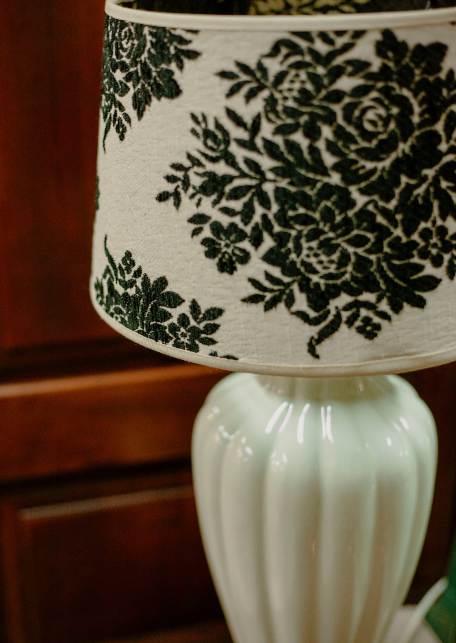 Настолна керамична лампа, вдъхновена от арт деко, която е светлинно съчетание на вечен дизайн и съвременно очарование. Тази завладяваща лампа със своите елегантни линии и мотиви въплъщава същността на епохата на Арт Деко. Керамичната основа, завършена с красива кремава глазура, излъчва изтънченост и топлина, добавяйки докосване на сдържана елегантност към всяко пространство. В съчетание с абажур, украсен с поразителни черни цветя, тази прецизно изработена настолна лампа се превръща в истинска забележителност. Контрастните елементи създават хармоничен баланс, обединяващ винтидж вдъхновение и модерна изтънченост в сияен кремав цвят.