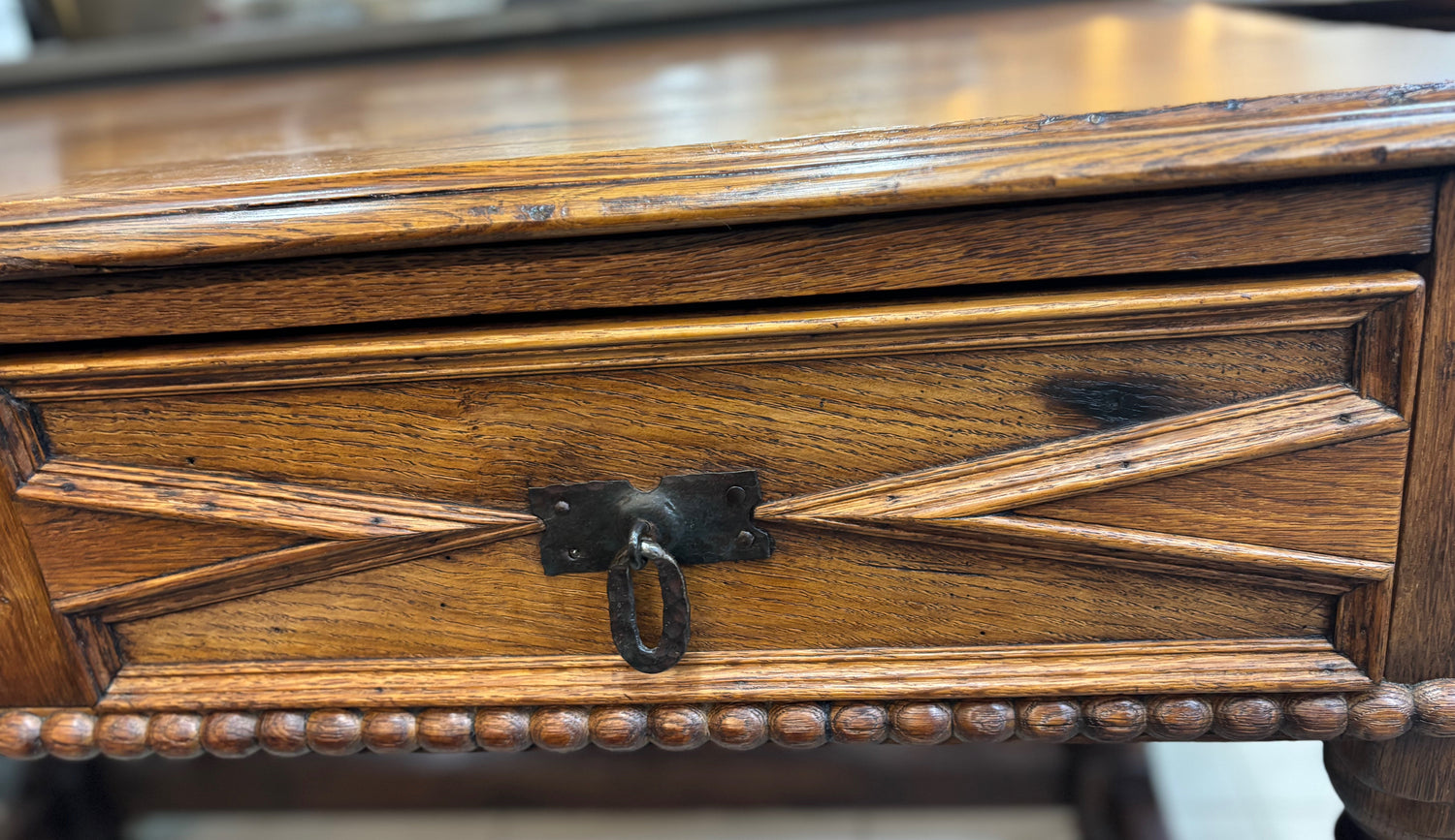Викторианска дъбова конзолна маса в стил Jacobean Revival, датирана от 1880–1900 г.