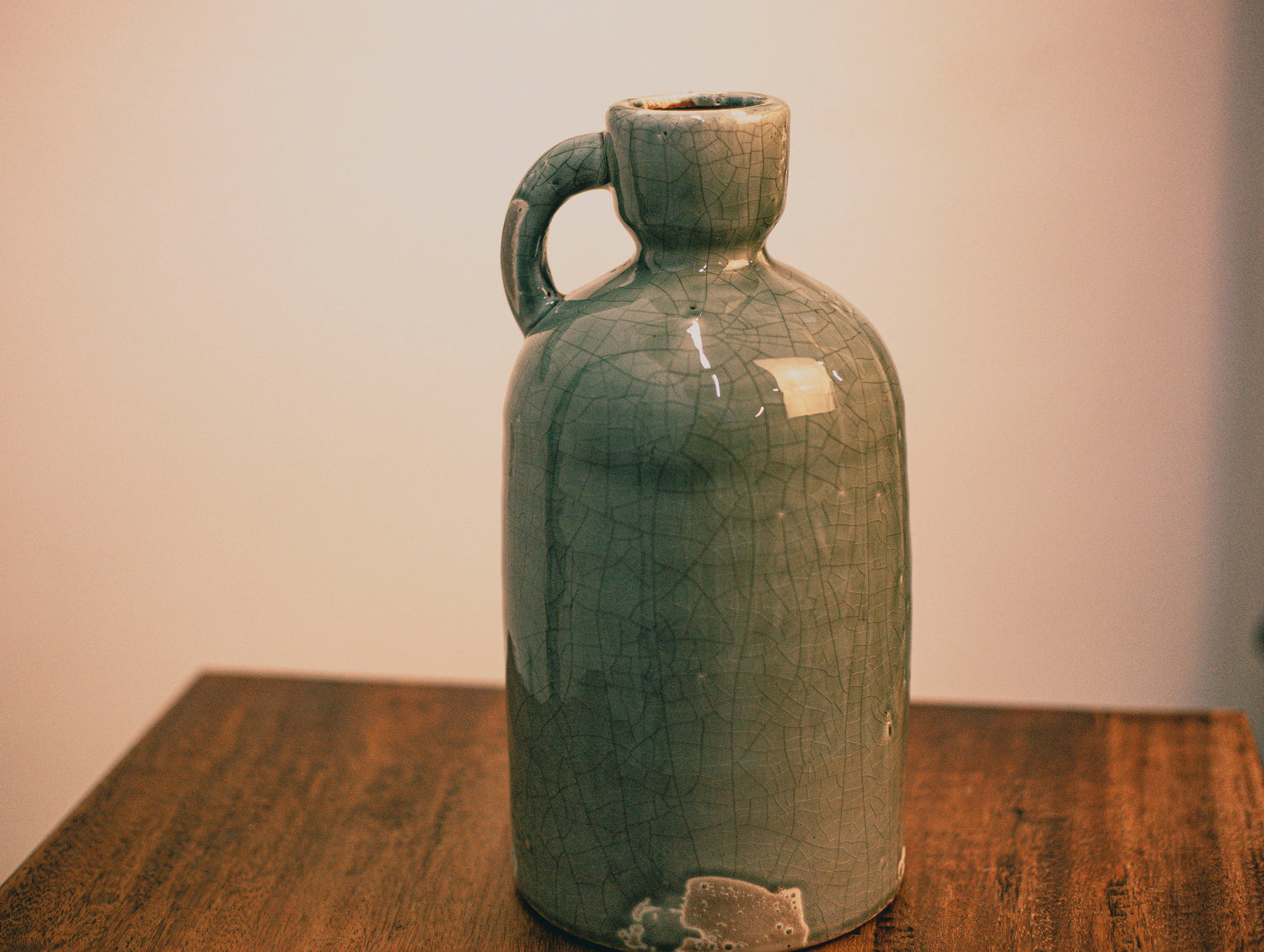 Глинена кана с ефект на напукване в зелено-синьо-сиви тонове, който вдъхва на пространството ви земно очарование. Изработена с грижа, тази кана придава рустикален чар на вашия интериорен дизайн. Независимо дали показва свежи цветя или стои като самостоятелен акцент, тя със сигурност ще издигне интериора ви с уникалната си текстура и естествена красота.