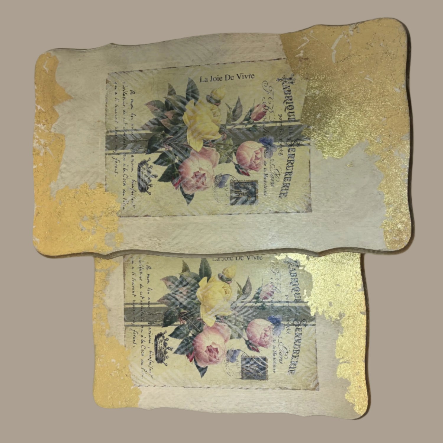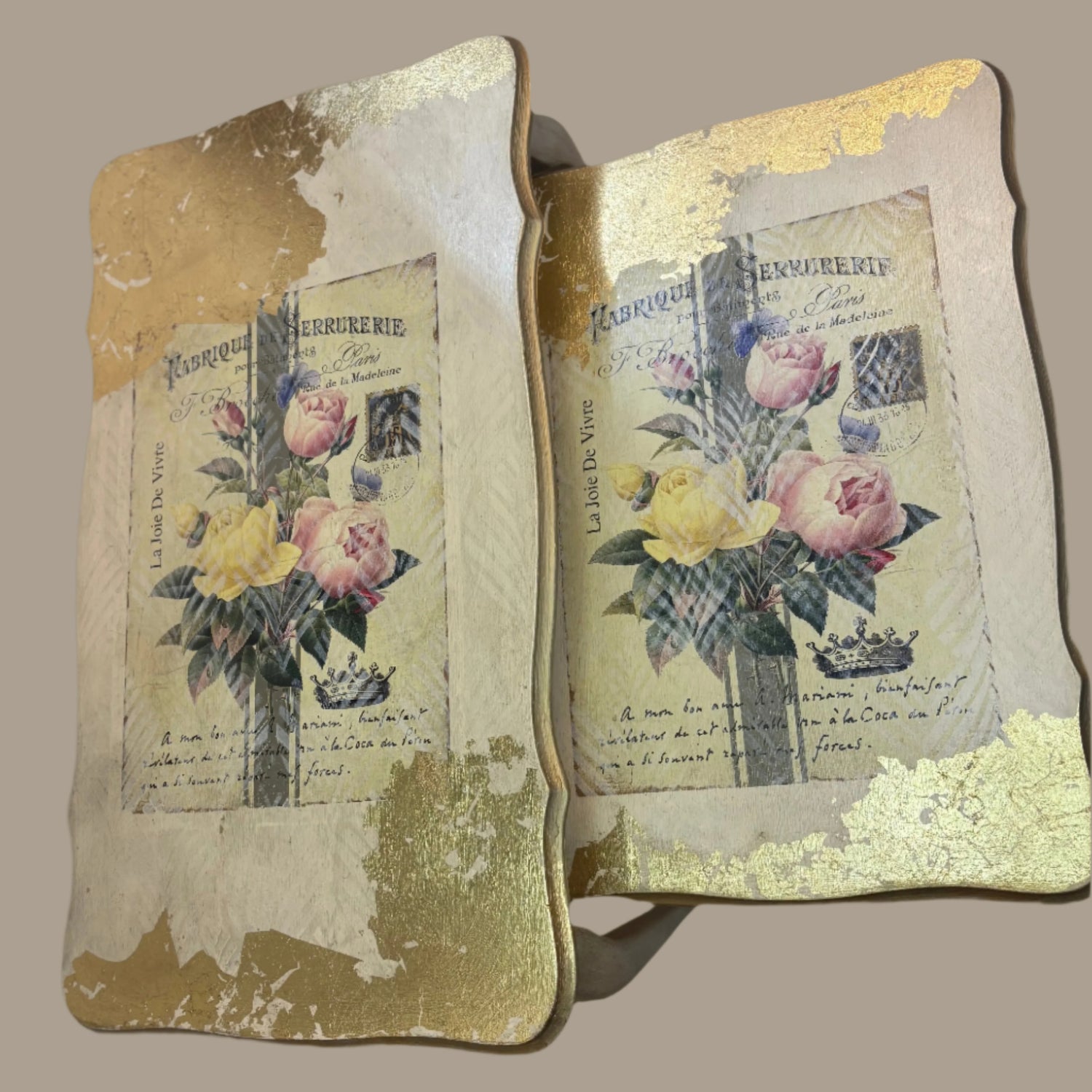 Техника: Ръчен декупаж с цветна композиция и френски надписи