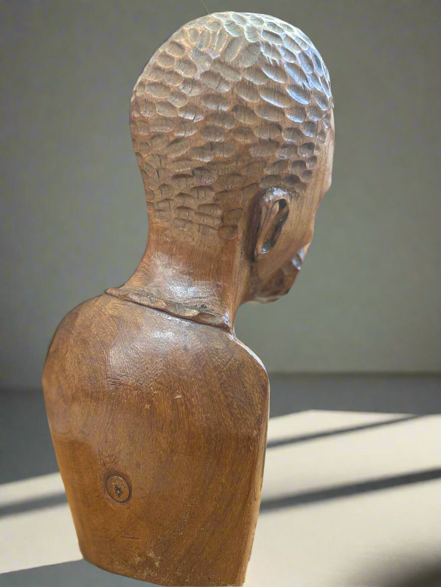 Ръчно изработен африкански дървен бюст-мъжка фигура /1950-1980г./