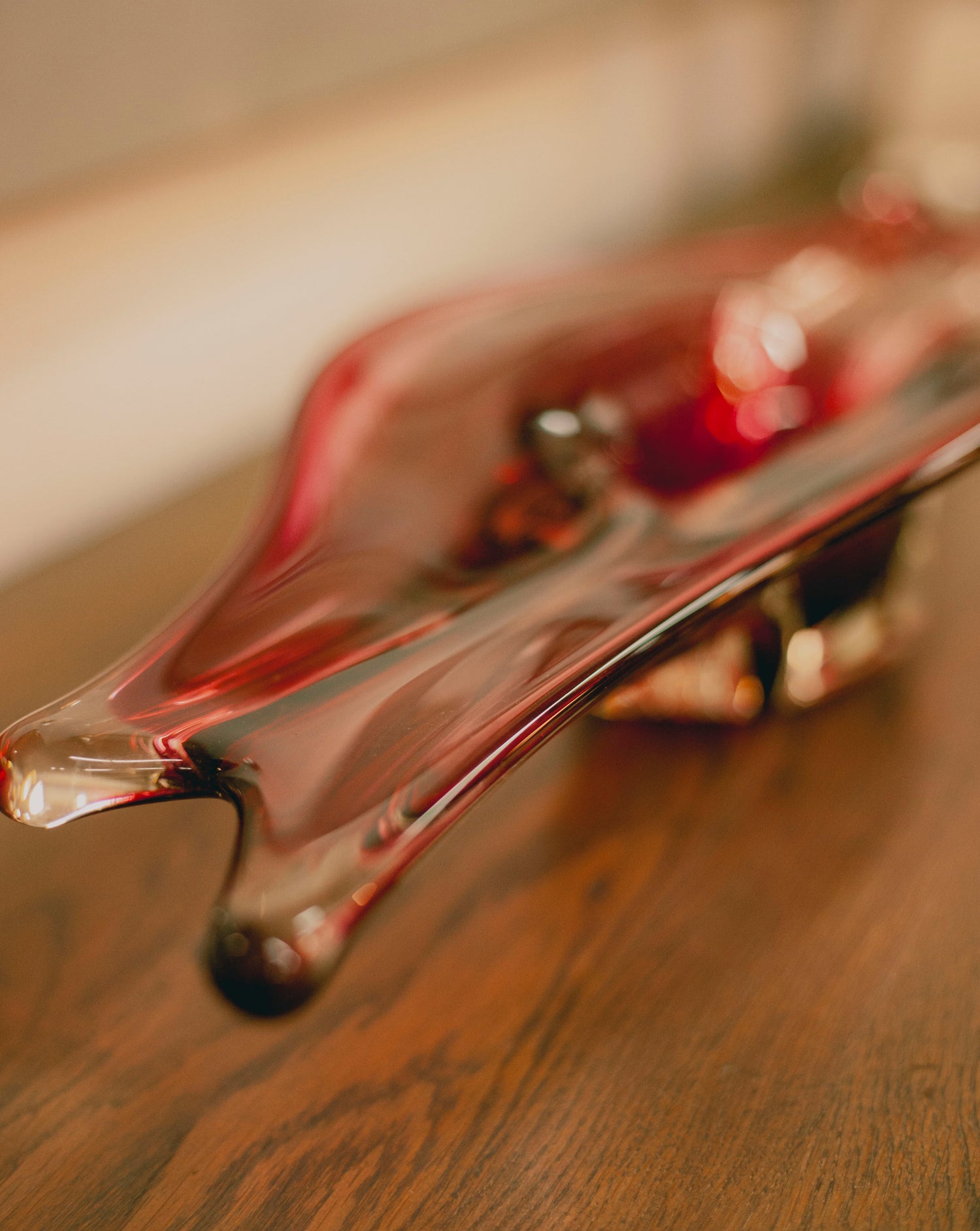 Ръчно изработената стъклена декоративна гондола - завладяващо съчетание на артистичност и функционалност. Изработена с грижа, всяка купа е доказателство за умелото майсторство, което се влага в създаването на наистина уникално произведение. Яркият поток от червен цвят, сложно вплетен в стъклото, създава хипнотизиращ визуален дисплей, който улавя и отразява светлината под всеки ъгъл. Уникалната форма на купата добавя модерно и артистично докосване към всяко пространство, превръщайки я в открояващ се акцент в декора на дома ви.